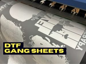 Our Direct-To-Film gang sheet printing service is the smart, efficient solution for multi-design orders. We combine several of your designs onto a single large film, which we print with vibrant, high-opacity white and color ink.